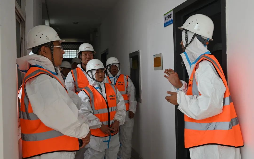 在稍事休息后,客户们做进入厂区参观前的准备,应集团生物安全防控以及入场参观要求,入场参观必须身着防护服,并做好安全防范措施。